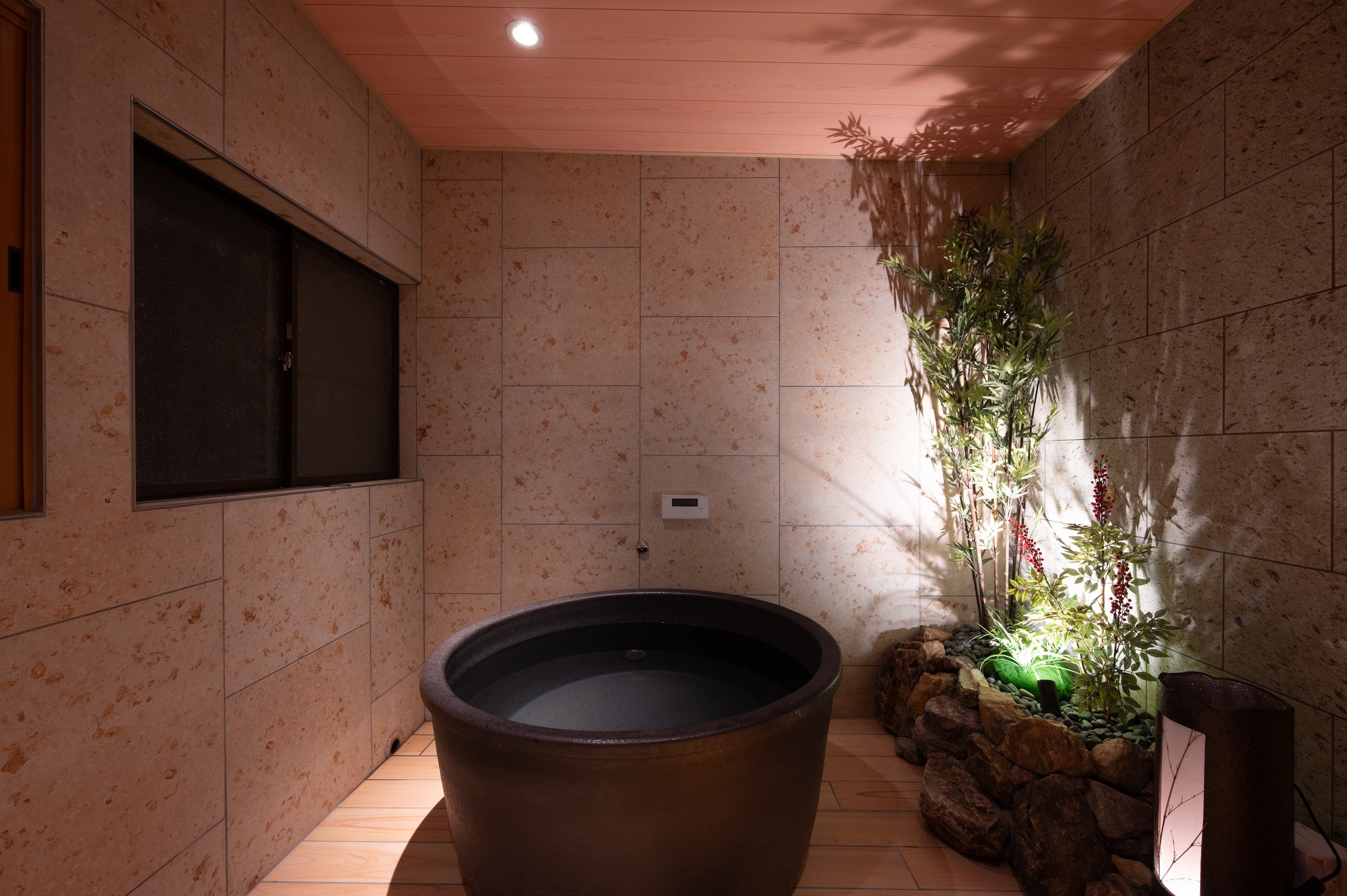 客室内には、組子や雪見障子、信楽焼の浴槽など日本の伝統意匠を随所に採用し、和の素材が持つ質感と温もりを感じられる空間を設計しました。また、海外からの旅行者を含む多様なゲストに快適に滞在いただけるよう、寒さ対策に力を入れた設備を導入。