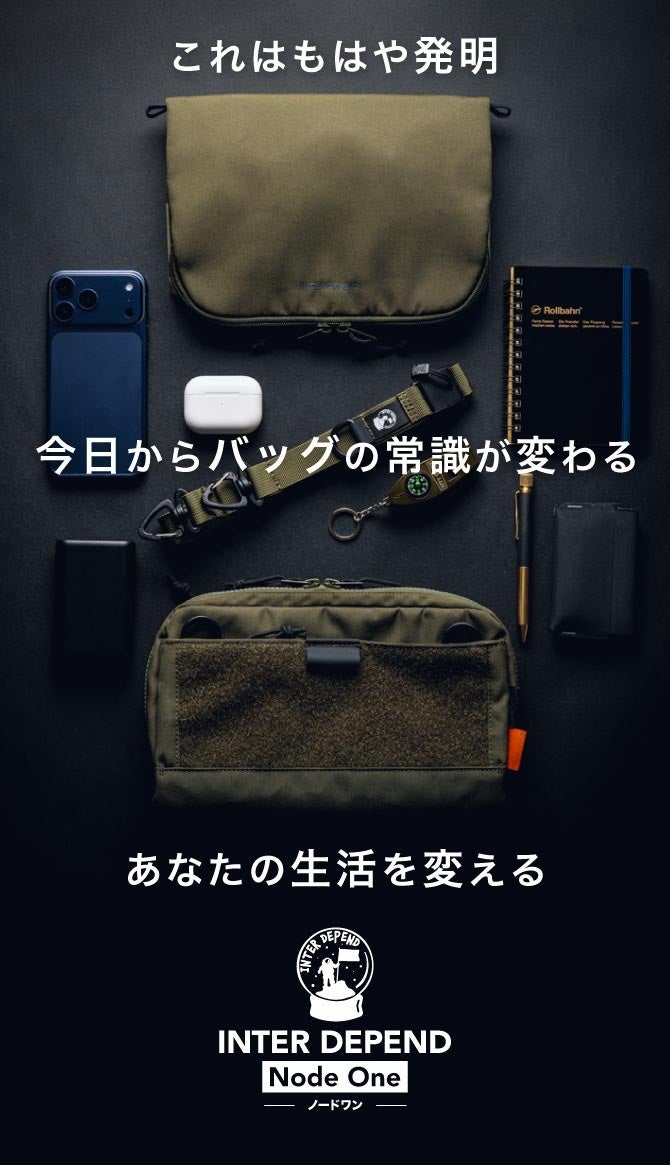 INTER DEPEND(インターディペンド)は、無類のバッグ好きがゼロから作り上げた日本発の完全オリジナルバッグブランドです。そんなINTER DEPENDが3年3ヶ月の歳月をかけゼロから作った最初のバッグ、「Node One(ノード ワン)」が、2025年12月18日(木)よりMakuakeにて世界に先駆け先行販売します。