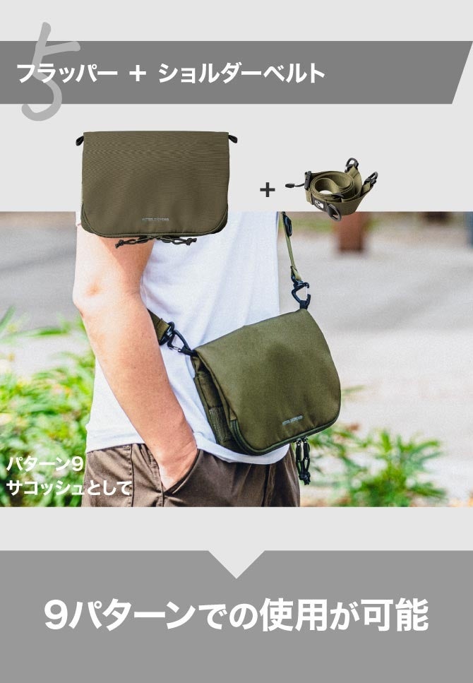 9つのパターンを1つのバッグで楽しめる。Node Oneならではの楽しみ方が出来る便利なショルダーバッグです。