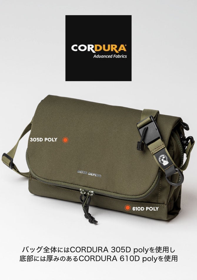 バッグの全体にはCORDURA®305D polyを採用し、耐久性がありながら、しなやかさと丸みを帯びたデザインを生み出しています。