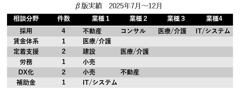 相談内容は、採用、賃金体系の整備、定着支援、労務対応相談、DX化(業務効率化)、補助金活用など、幅広い分野にわたる提案が寄せられました。