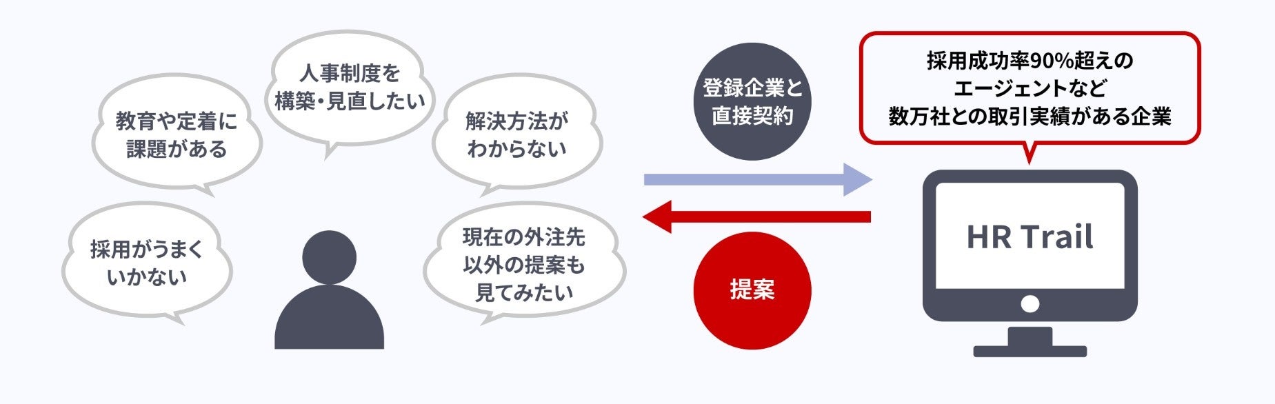 HRTrailは、単なるマッチングや紹介を目的としたサービスではありません。企業が抱える課題を整理し、複数の選択肢を並べて比較できる環境を提供することで、意思決定の質を高めることを目指しています。比較の結果、すべての提案を見送るという判断も尊重されており、企業が自社の状況に納得したうえで次のアクションを選べる点も特徴の一つです。