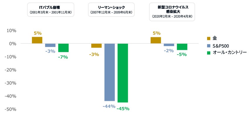 ポイント③ 景気後退時に示された、金がもたらす分散効果