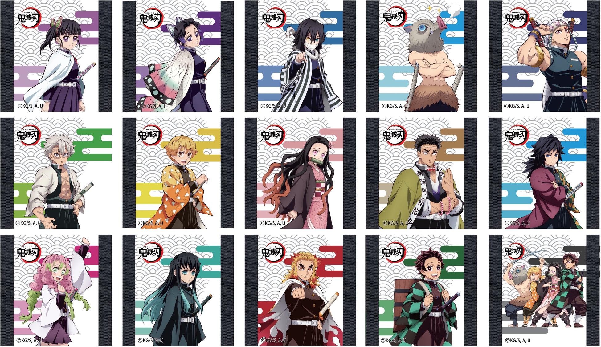 竈門炭治郎、竈門禰豆子、我妻善逸、嘴平伊之助、柱メンバーなど、キャラクターごとに異なるデザインを展開。各キャラクターを象徴する和柄やカラーリングと相性の良い畳地を背景に採用することで、作品の世界観をより立体的かつ印象的に演出します。