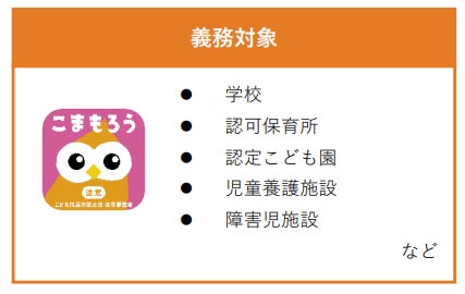 2026年12月から始まる「こども性暴力防止法」は、学校や保育所、学習塾やスポーツクラブなど、こどもに対して教育・保育等を提供する場での性暴力を防止するための制度です。法律が施行されると、こうした施設・事業者には、従事者に対する性犯罪前科の有無の確認のほか、相談窓口の設置、性暴力やその疑いが生じた際の調査、被害児童の保護・支援、従事者への研修などのこどもへの性暴力を防ぐための取組が求められます。学校や認可保育所等の公的な施設は必ずこうした取組を行うこととなり、学習塾やスポーツクラブ等の民間事業者についても、国の定める基準を満たし、認定を受けることで同様の取組を実施することとなります。これらの施設・事業者は「こまもろう」マークを表示することができ、こどもを性暴力から守るための取組を適切に行う施設・事業者であると、こどもや保護者から一目でわかるようになります。