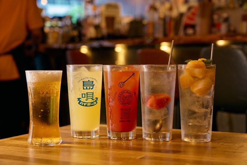 ハイボール、レモンサワー、水出しさんぴん茶割り、紅芋豆乳ラテ、さんぴん茶