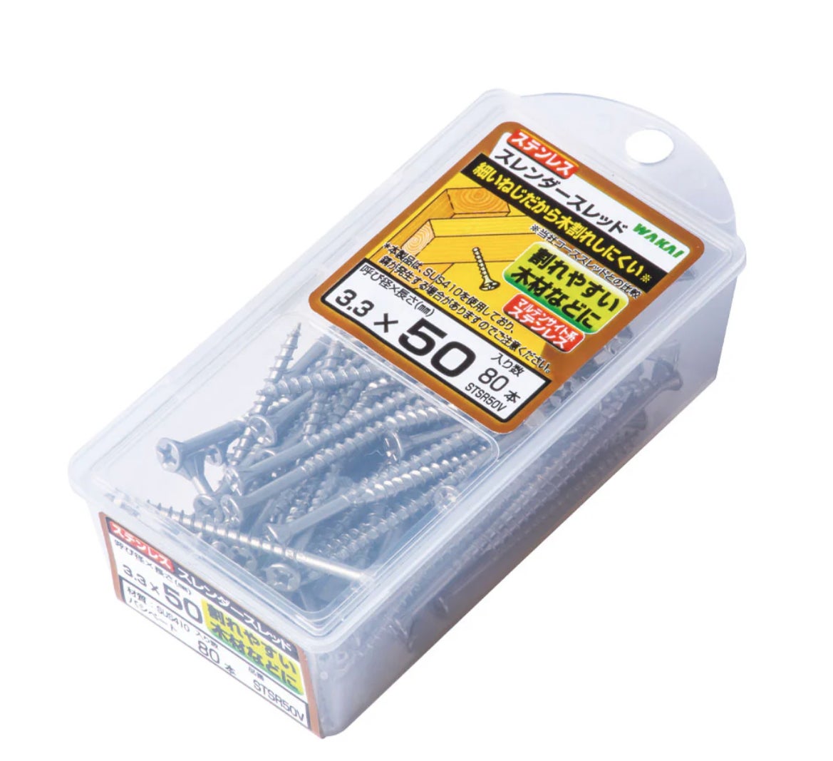 薄板でも割れにくく、軽い打ち込み感でスムーズに入る万能ビス。特殊なねじ形状により、下穴なしでもスムーズに貫通するため、材料の割れや浮きを抑え、仕上がりの美しさを保てる点が特長です。プロの現場で重宝されるだけでなく、ウッドデッキ施工向けのデッキビス、割れを抑えるフレキタイプ、屋外・水回りに強いステンレスシリーズなど、用途に合わせて細かく選べるラインナップは業界でも屈指の豊富さ。求める用途に最適なビスが必ず見つかる点が、DIYユーザーからも支持を集めています。