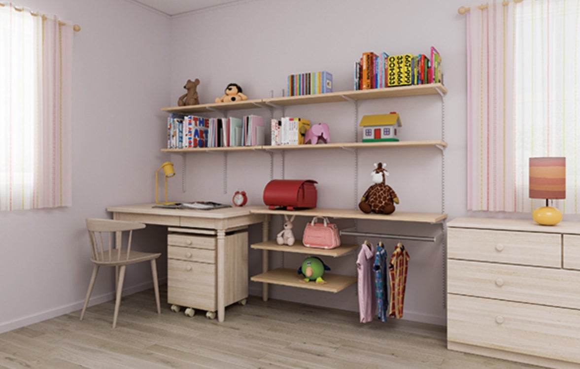部屋の片隅やウォークインクローゼットなど、デッドスペースを棚に変えることができる可動式収納金具です。棚柱は600mm・1200mm・1820mmと幅広く、現場ごとに最適なサイズを選べるため、施工性の高さから職人の方に支持されているシリーズ。棚柱・棚受金具・棚板などパーツも豊富で、子どもの成長に合わせた高さ調整や、靴収納の拡張、趣味スペースの棚追加など、用途に応じて柔軟に組み替えが可能です。