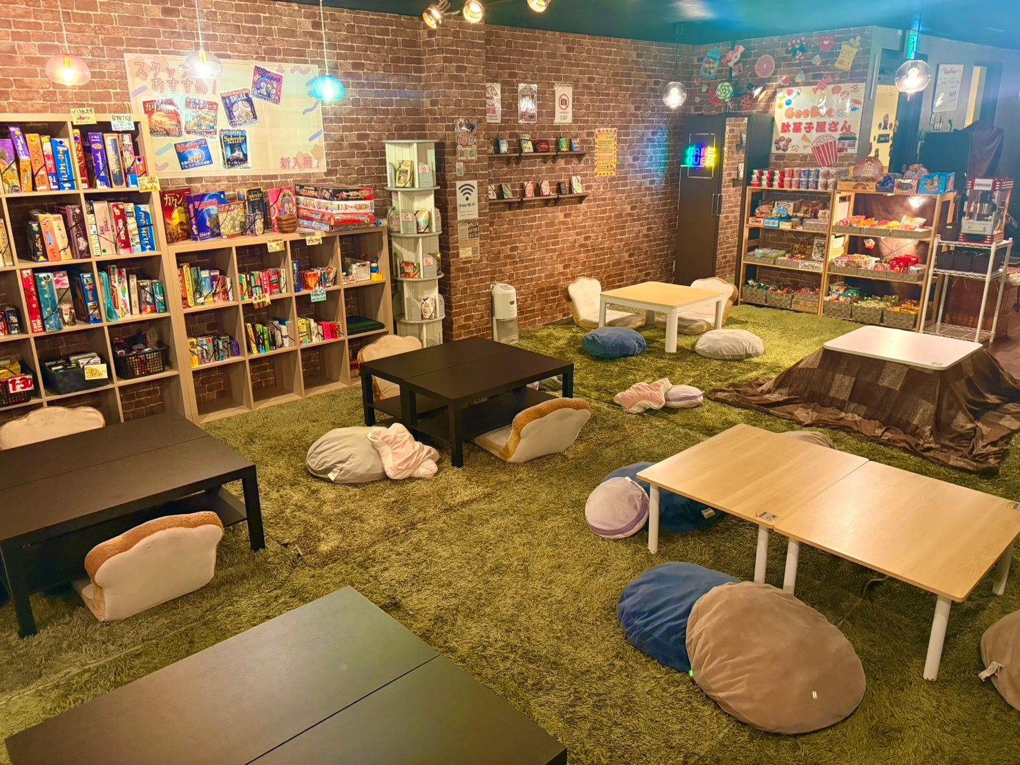 店内にはラグマットが敷かれ、ごろごろ寝転がりながら、気軽にボードゲームを楽しめる“友だちの家のような空間”を目指しています。