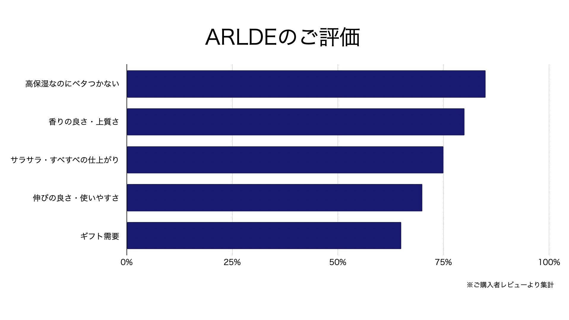 実際にご購入いただいたお客様のレビューをもとに集計した結果、「高保湿なのにベタつかない使用感」や「香りの良さ・上質さ」に対して、特に高い評価をいただいています。
