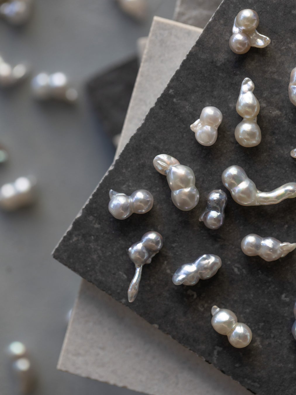 これまでの「丸くて傷のない美しい真珠」という価値と、「唯一無二の形を持つバロック真珠」の価値。私たちは、その両方を大切にしていきたいと考えています。「Shizuku Pearl」では、一つひとつの真珠の個性を見極め、形や表情を活かした加工を店内で行っています。