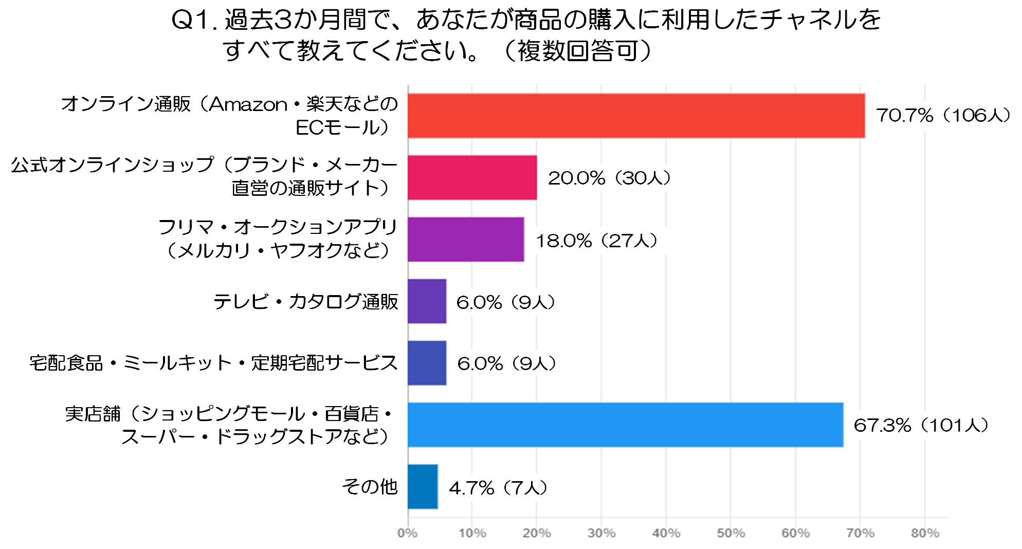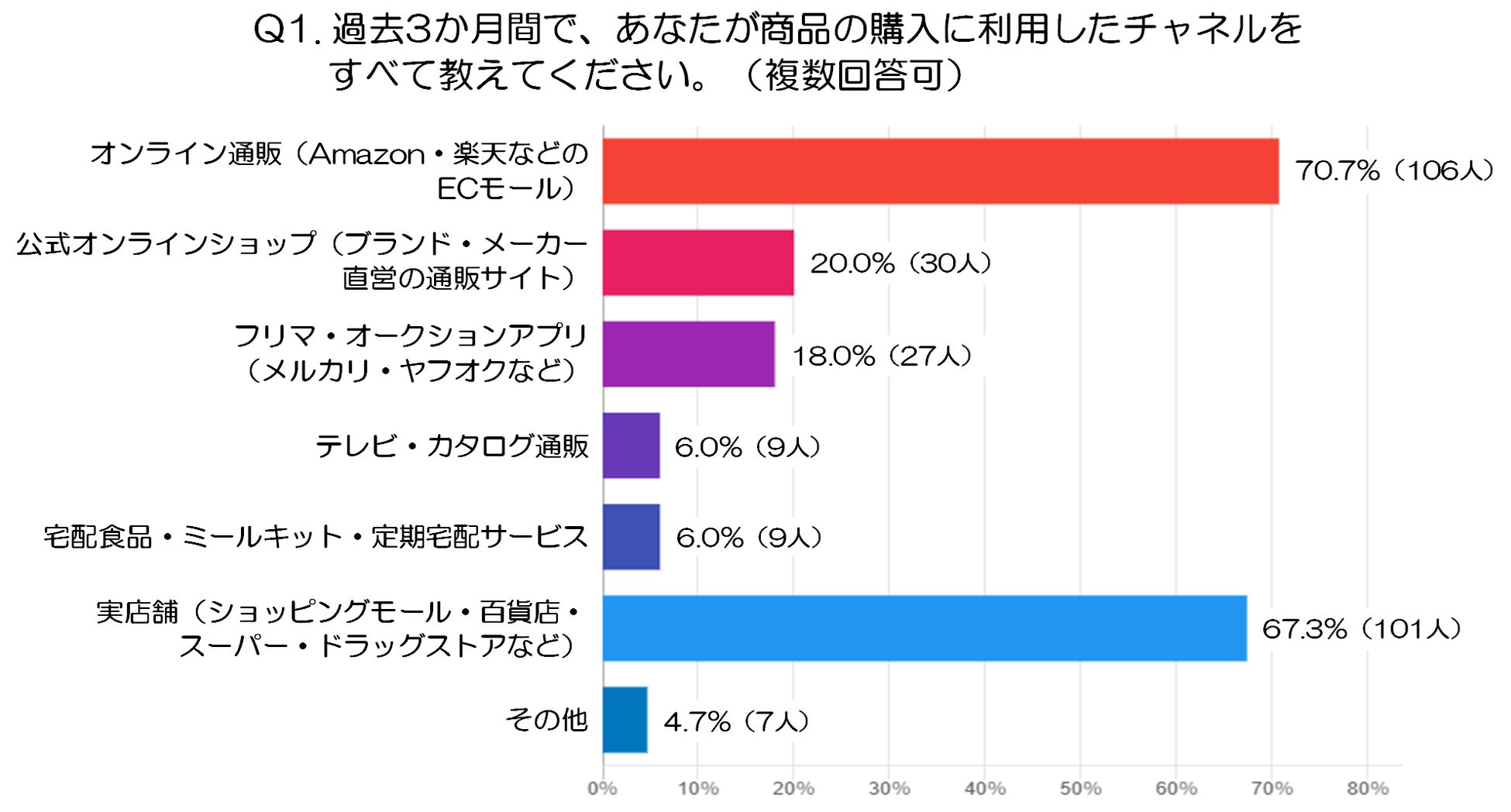Q1. 過去3か月間で、あなたが商品の購入に利用したチャネルを教えてください。(複数回答可)