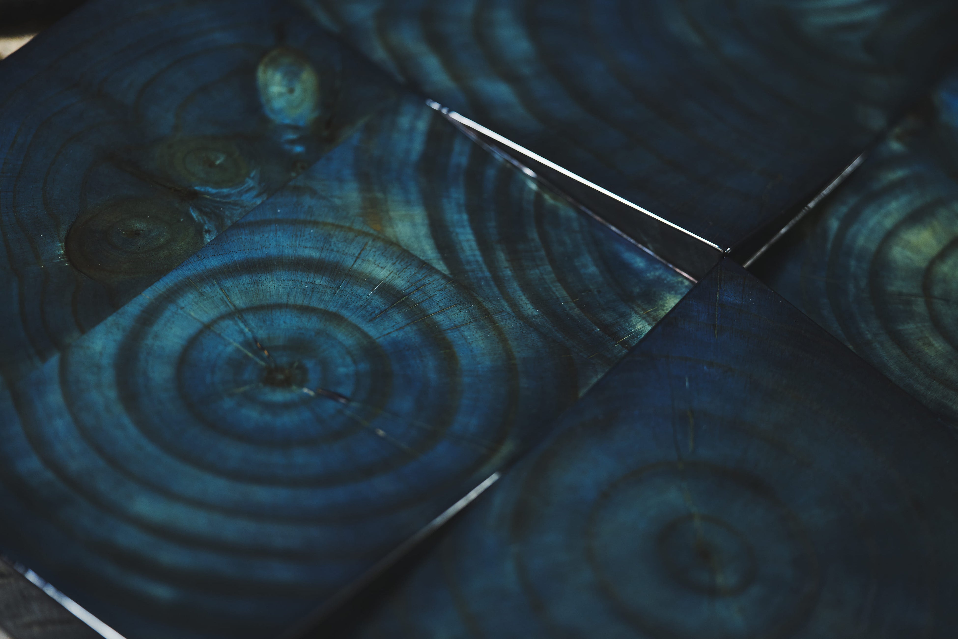 また、元会長による年輪突板作品「ラジアタブルー」が、フランスのサロン・ド・アール・ジャポネで最優秀賞を受賞した実績を持ち、長年培ってきた突板加工技術と手仕事へのこだわりが作品の基盤となっています。