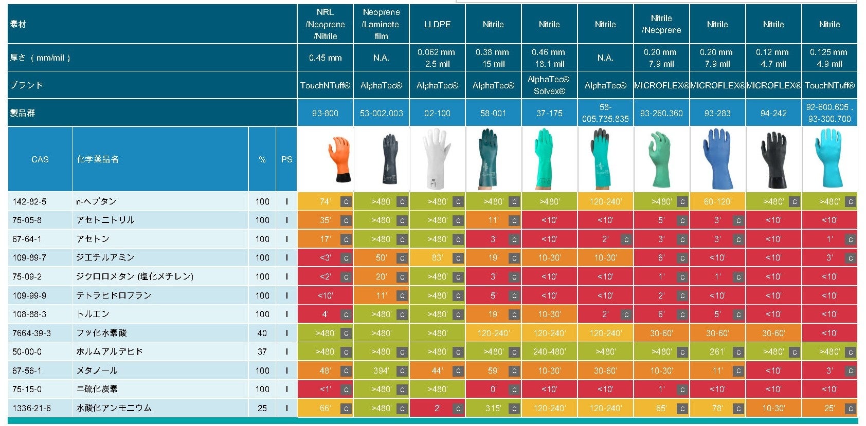 アンセルは、労働安全衛生法で対象となる化学物質に対応した、極めて化学防護性能が高く操作性も備えた AlphaTec™ 53-002 と AlphaTec™ 53-003 の販売に加え、業界初のアセトン耐性15分以上の革新的な耐透過使い捨て手袋 TouchNTuff™ 93-800 を世界に先駆けて日本で販売開始いたします。優れた防護性と強化された機械的特性で、現代の多様な作業環境の課題に対して包括的なソリューションを提供します。