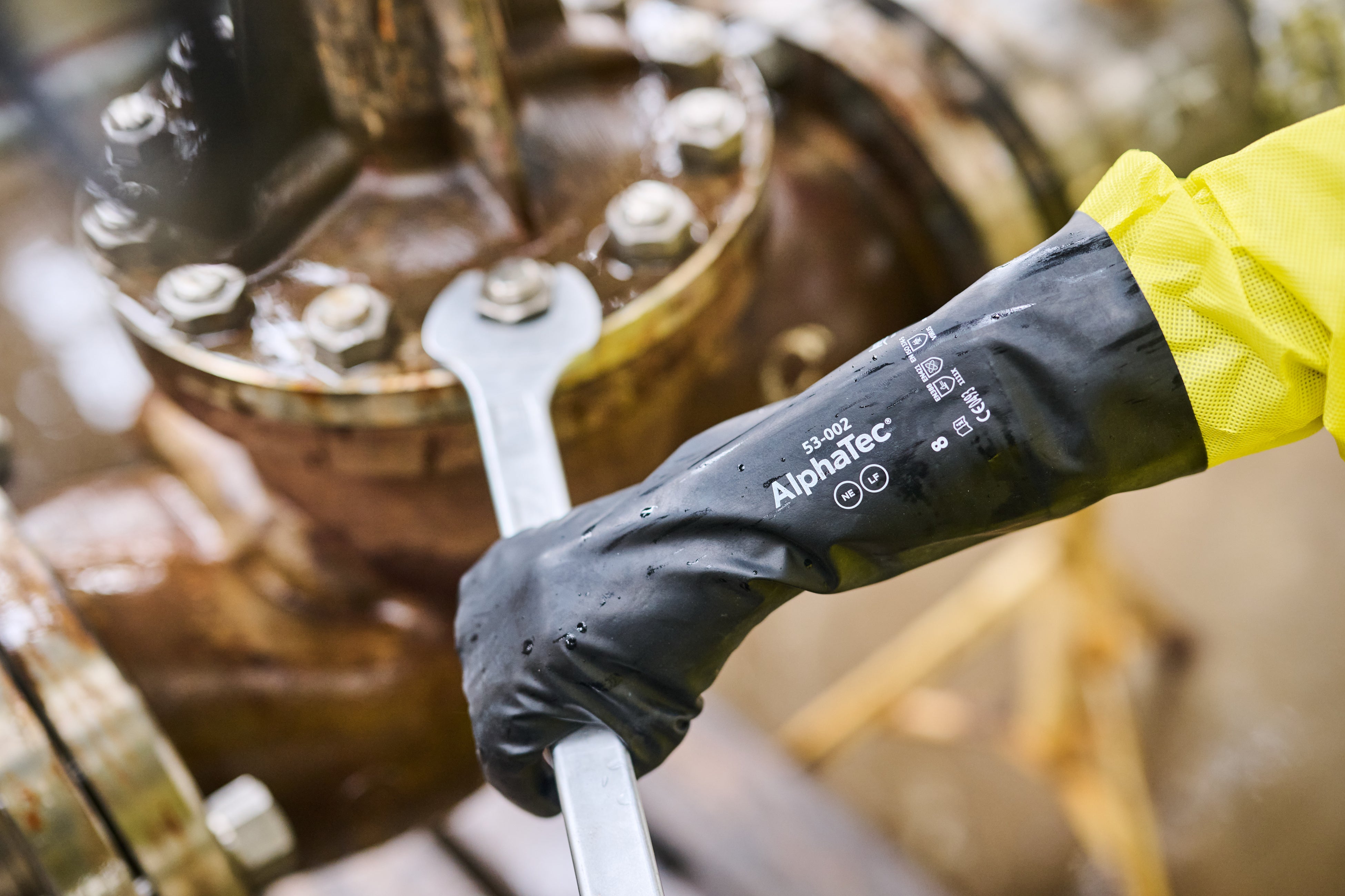 AlphaTec™ 53-002/53-003 は幅広い耐薬品性を備えながら、手に自然にフィットする形状と、作業性を損なわない適度な厚みにより、長時間の作業を実現する化学防護手袋です。アンセル独自の MICROCHEM™テクノロジーを活用し、ゴムポリマーとプラスチックラミネートの優れた特性を融合させた多層設計により製造されています。これにより、従来二重装着が必要だった場面においても、本製品を一双着用するだけで、保護性能と操作性を提供することが可能になりました。
