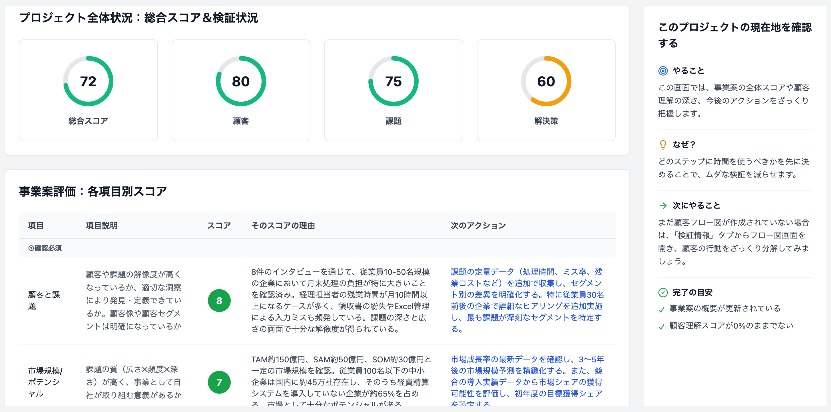 これにより、初めて事業開発するメンバーでも高い再現性で事業を推進でき、責任者のレビュー工数を大幅に軽減します。