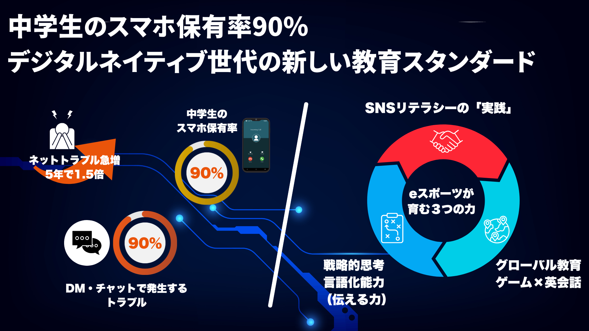 中学生スマホ普及率90%超の影で増えるトラブルを、eスポーツで「解決」する 。言語化能力・英語力・リテラシーを鍛える機会を創出する。