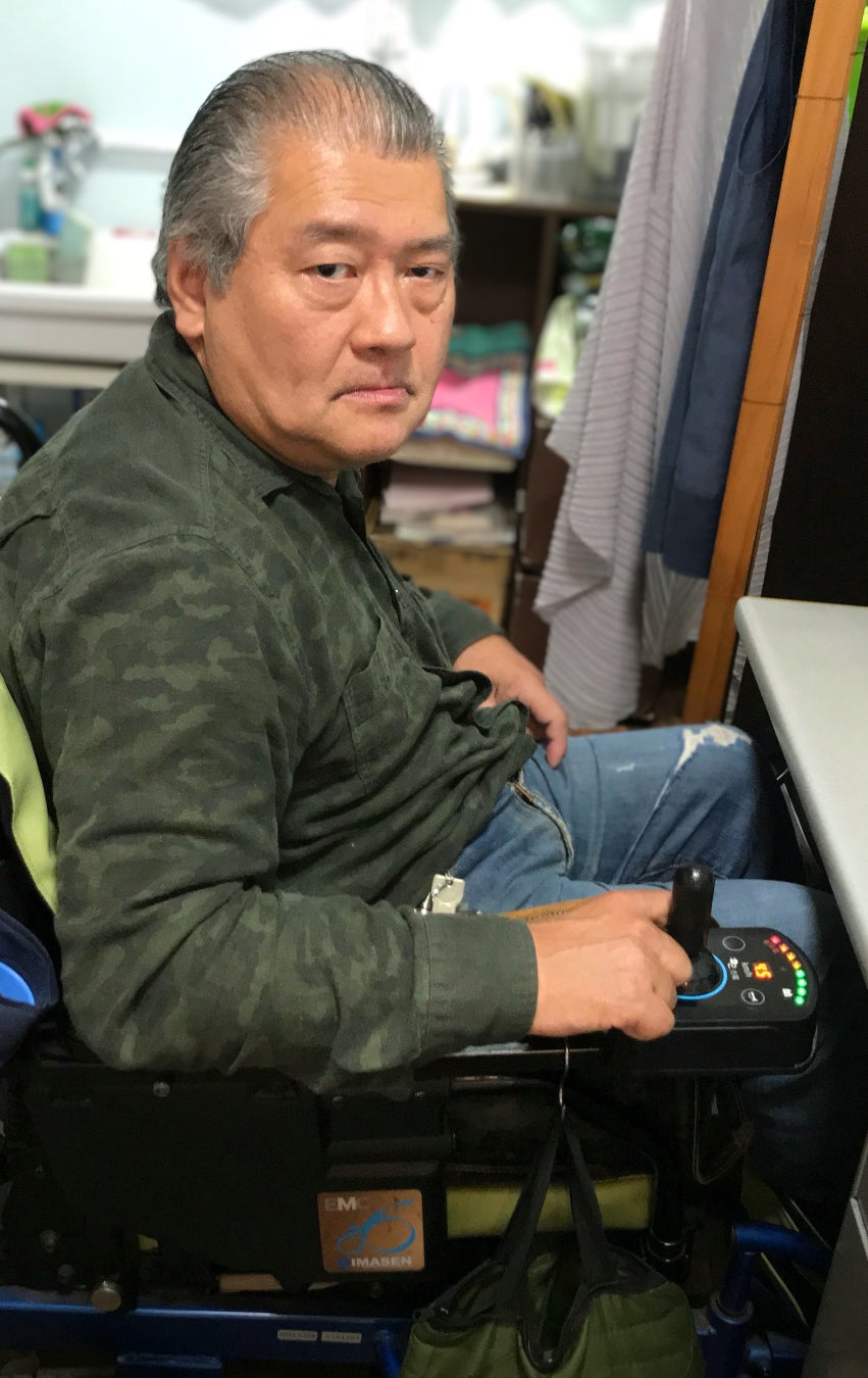 岡崎は生後8ヶ月の高熱と長時間の痙攣により身体に障がいを負いました。しかし、幼少期から障がいは「自分の生活の一部」であり、特別視することなく成長。 23歳で親元を離れ不動産会社を起業し、現在はヘルパーの支援を受けながら自立した生活をしています。