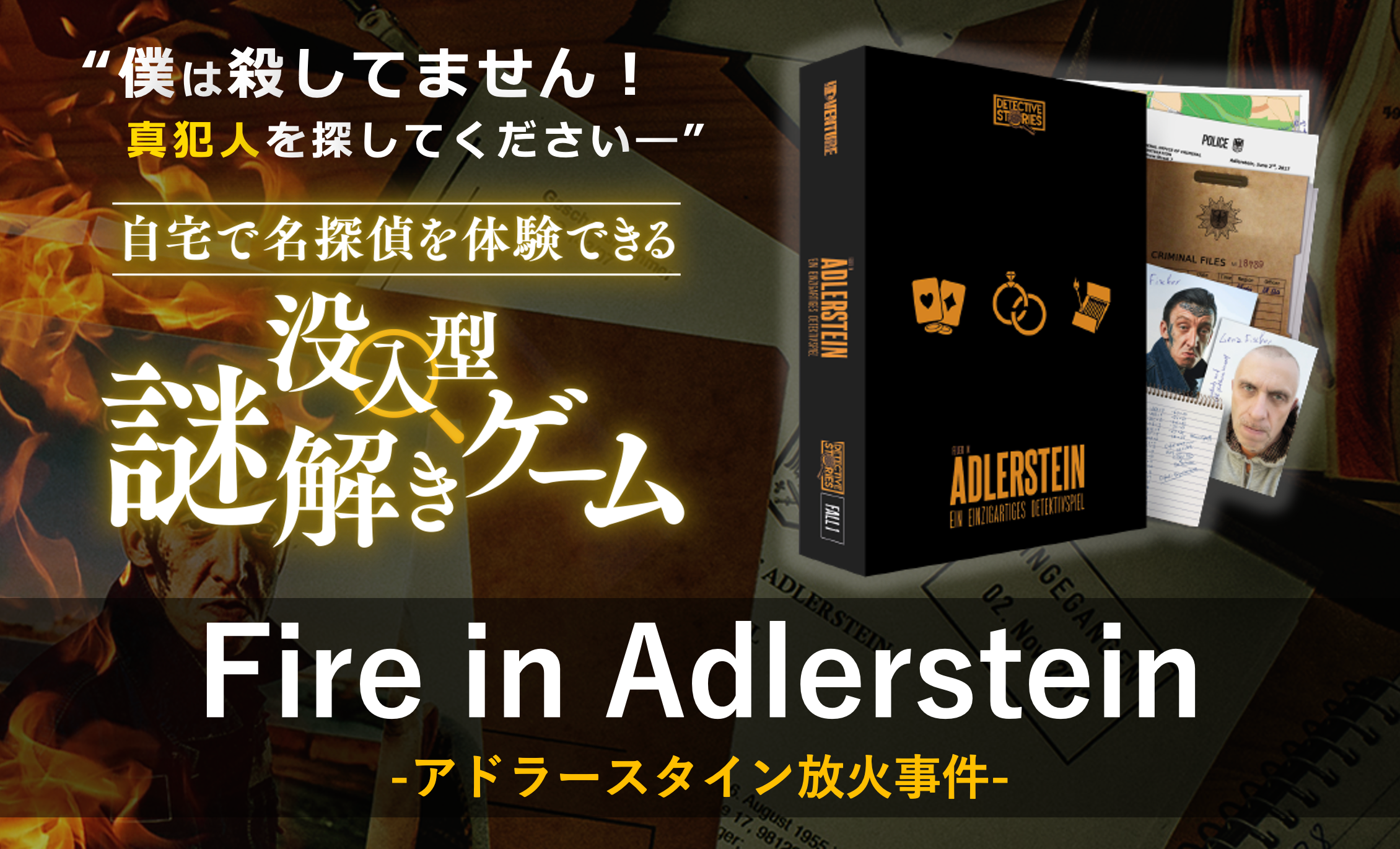 【世界22万セット】自宅で名探偵を体験できる!ミステリー作家・神永学氏も推薦する本格推理ゲーム『アドラースタイン放火事件』が日本初登場