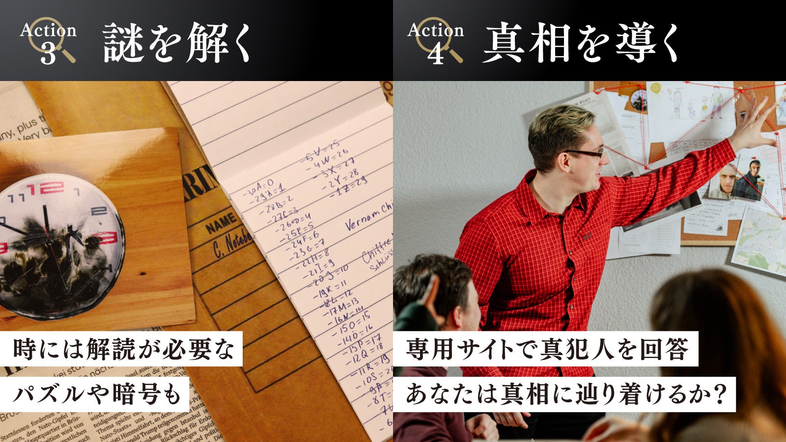 ミステリー小説を読むようにひとりで楽しむのも、ボードゲームをプレイするようにワイワイ盛り上がるのもあり!また、完全日本語翻訳された充実のヒントページにより、「謎解きやパズルが苦手」という方でも真相に辿りつくことが可能です。