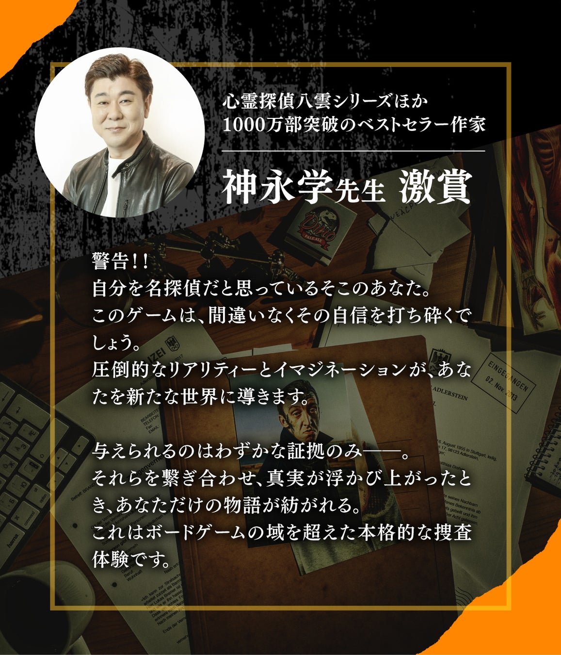 ・ミステリー作家神永学氏(『小泉八雲シリーズ』ほか)も推薦する「本格的な推理体験」