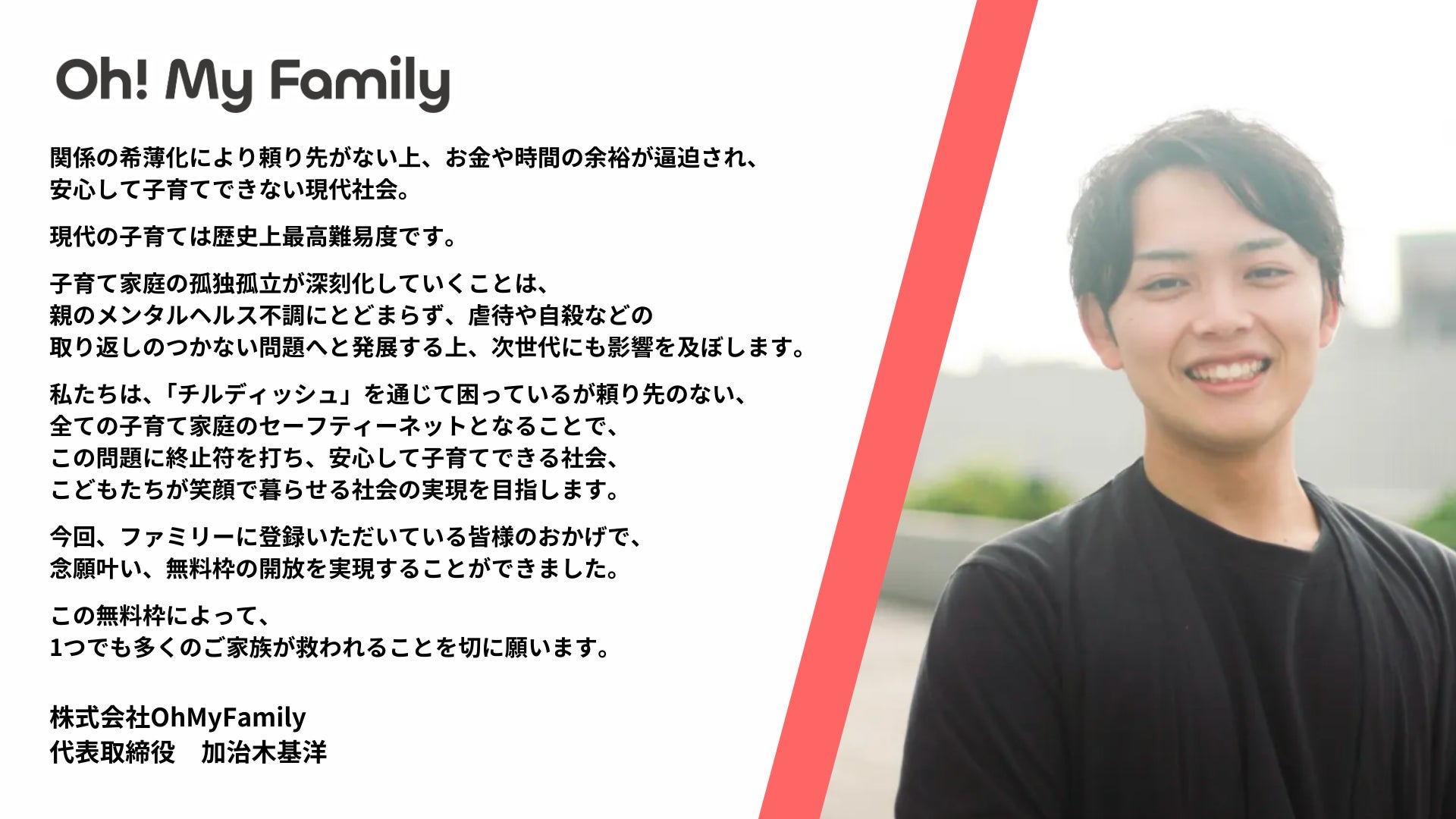 ◾️株式会社OhMyFamily 代表取締役 Co-CEO 加治木 基洋より
