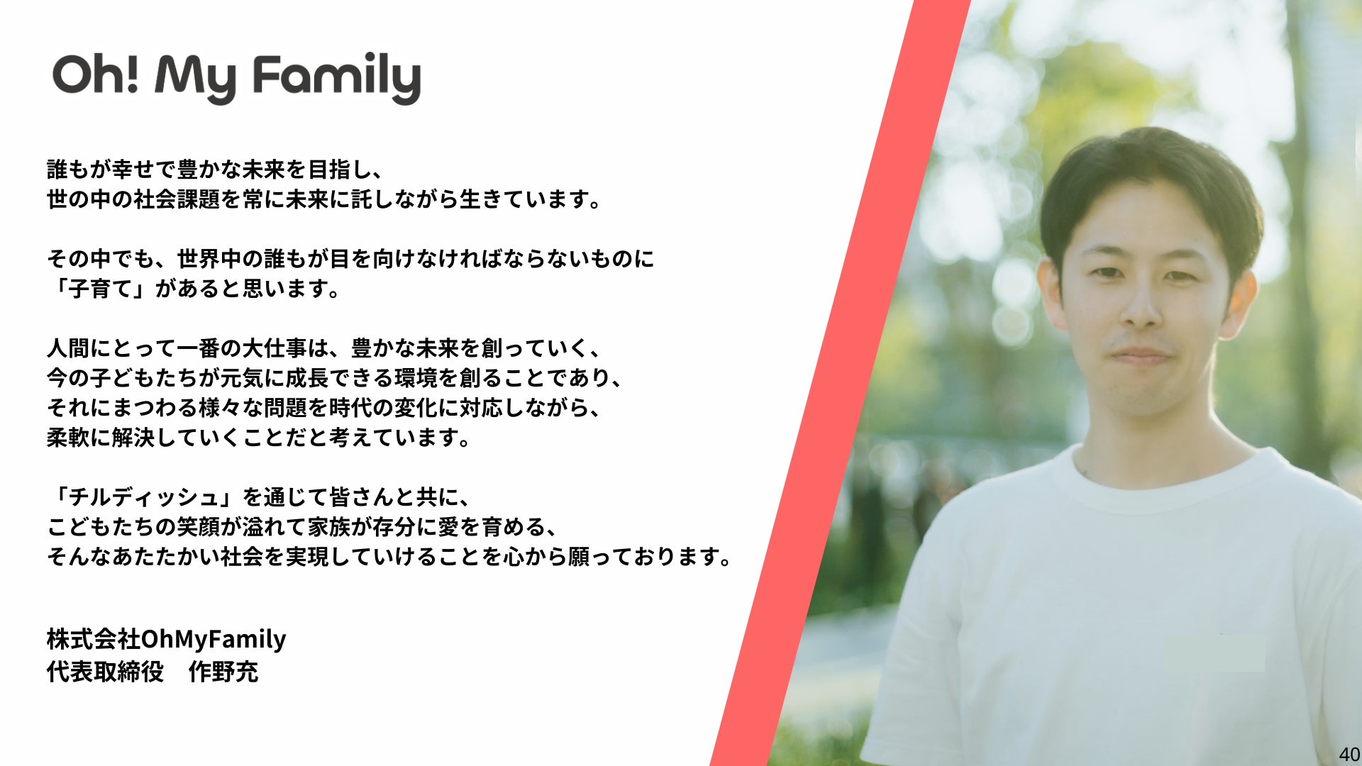 ◾️株式会社OhMyFamily 代表取締役 Co-CEO 作野充より