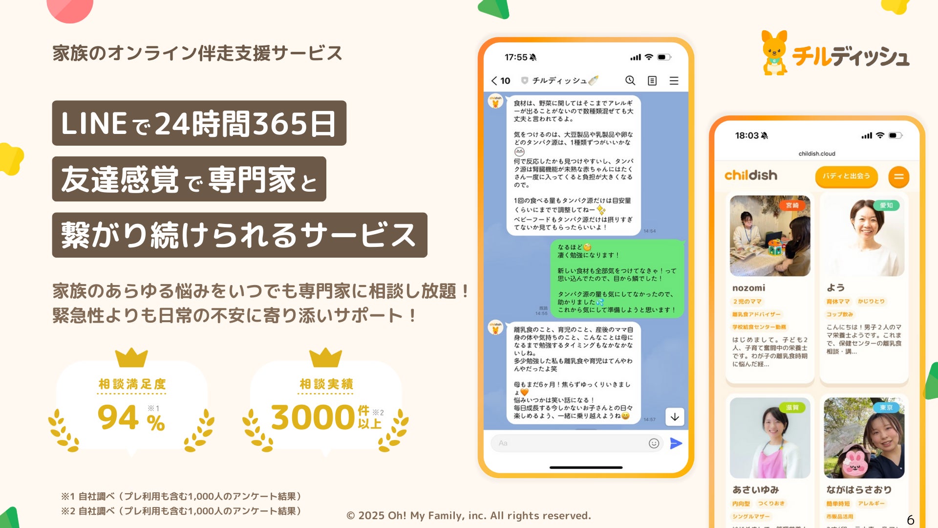 「世界中の全てのこどもが自分を愛せる社会の実現」をビジョンに掲げる株式会社OhMyFamily(所在地:京都府京都市、代表取締役:加治木基洋 / 共同代表:作野充)は、会社設立から半年を記念して子育てのモヤモヤを解決するオンライン伴走支援サービス「チルディッシュ」の無料利用枠をリリースしたことを発表いたします。