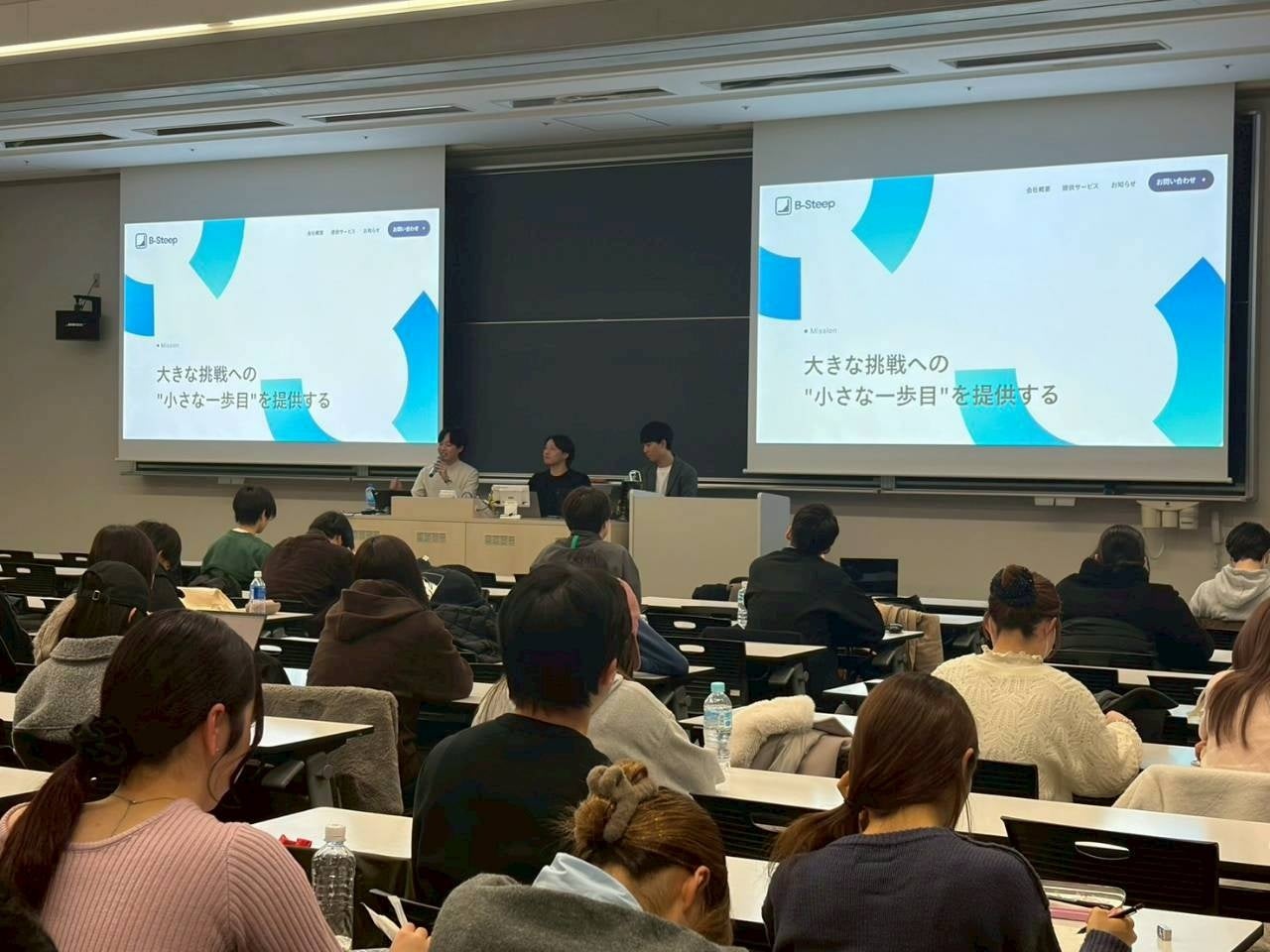 AIワークフローおよびAIエージェントの導入支援を展開する株式会社B-Steep(本社:神奈川県藤沢市、以下「当社」)の代表取締役 武藤 匠吾は、CeeGlass Suiteや総合型選抜専門塾ココミットを運営する株式会社CeeGlass(本社:神奈川県川崎市)の代表取締役 中山恭輔、取締役COO 和田瑛輔と共同で、青山学院大学 経営学部のカリキュラム「事業戦略概論」において特別講義を実施いたしました。