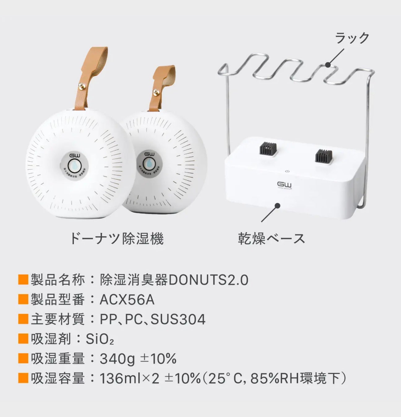 本製品は、過去に好評を博したコンパクト除湿器「Donuts」シリーズの進化版として誕生。ドーナツ型の除湿器と専用乾燥ベースを組み合わせることで、使い捨て除湿剤に代わる、繰り返し使えるエコな湿気対策を実現します。