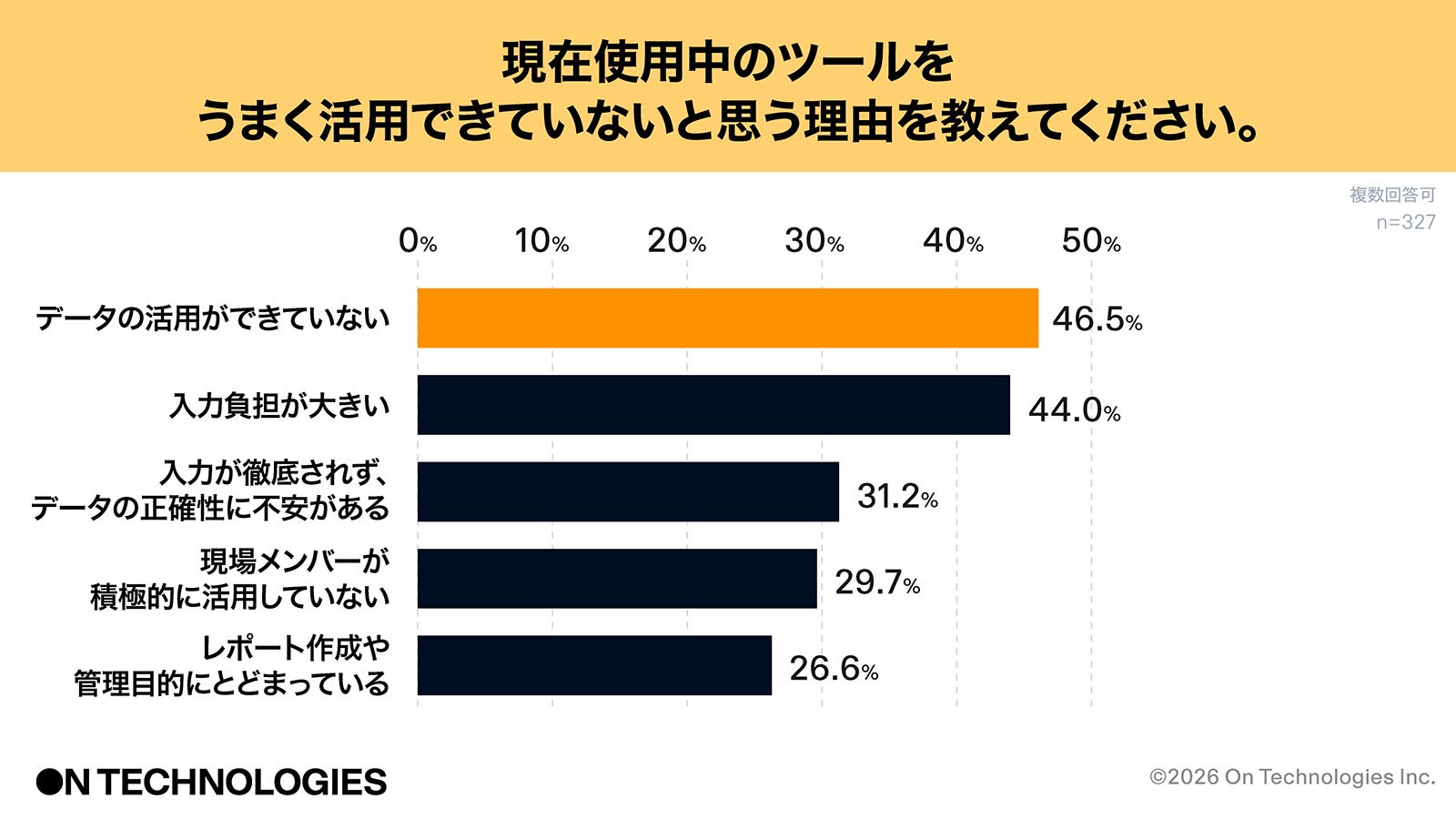 現在使用中のツールをうまく活用できていない理由は「データの活用ができていない」がトップ