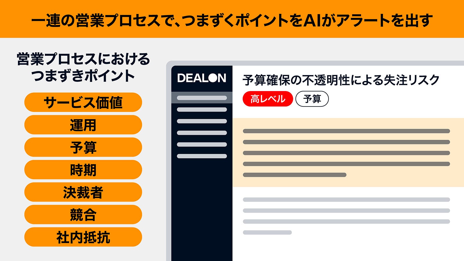 特徴①:「DealOn」搭載のAIセールスマネージャーによる「次の一手の提案」で成約数や売上向上を支援