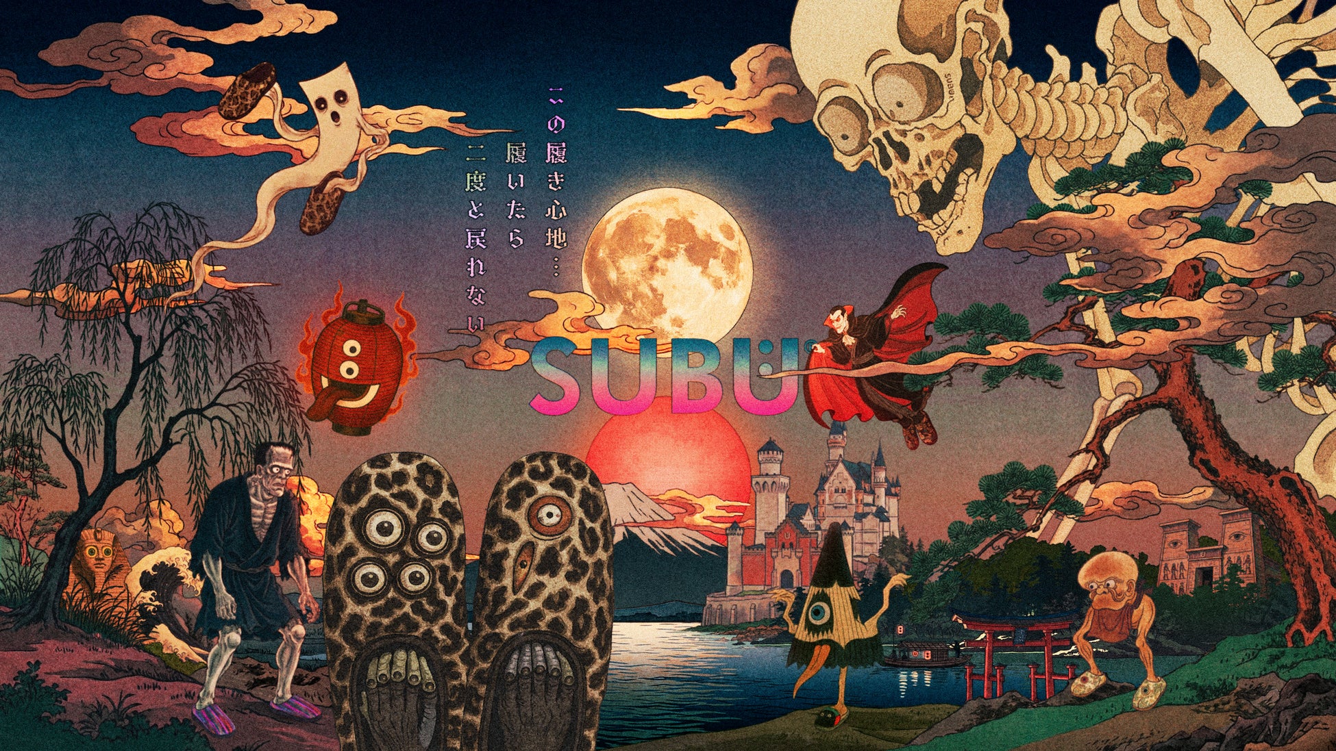 本POPUP STOREは「履いたら二度と戻れない…」をコンセプトに、“SUBU ×YO~KAI”の世界観をプロジェクションマッピング、映像やグラフィックなど多彩な表現で空間全体で来場者を異界へと誘うような没入体験型のイベントです。
