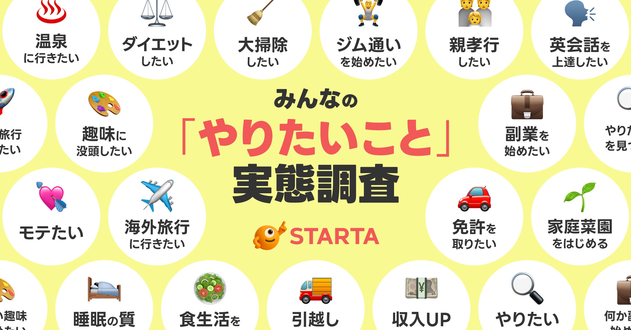 目標達成支援アプリ「STARTA」を運営する株式会社Surface&Architectureは、全国の20代〜60代の男女1,000名を対象に「やりたいこと」に関する実態調査を実施しました。