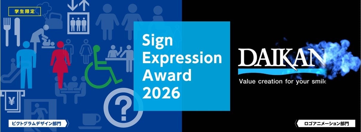 株式会社DAIKAN(代表取締役社長:仁義修)は、サインが担う価値の再定義に向けて、若いクリエイターの自由な挑戦を支援するデザインアワード『Sign Expression Award2026』を開催いたします。