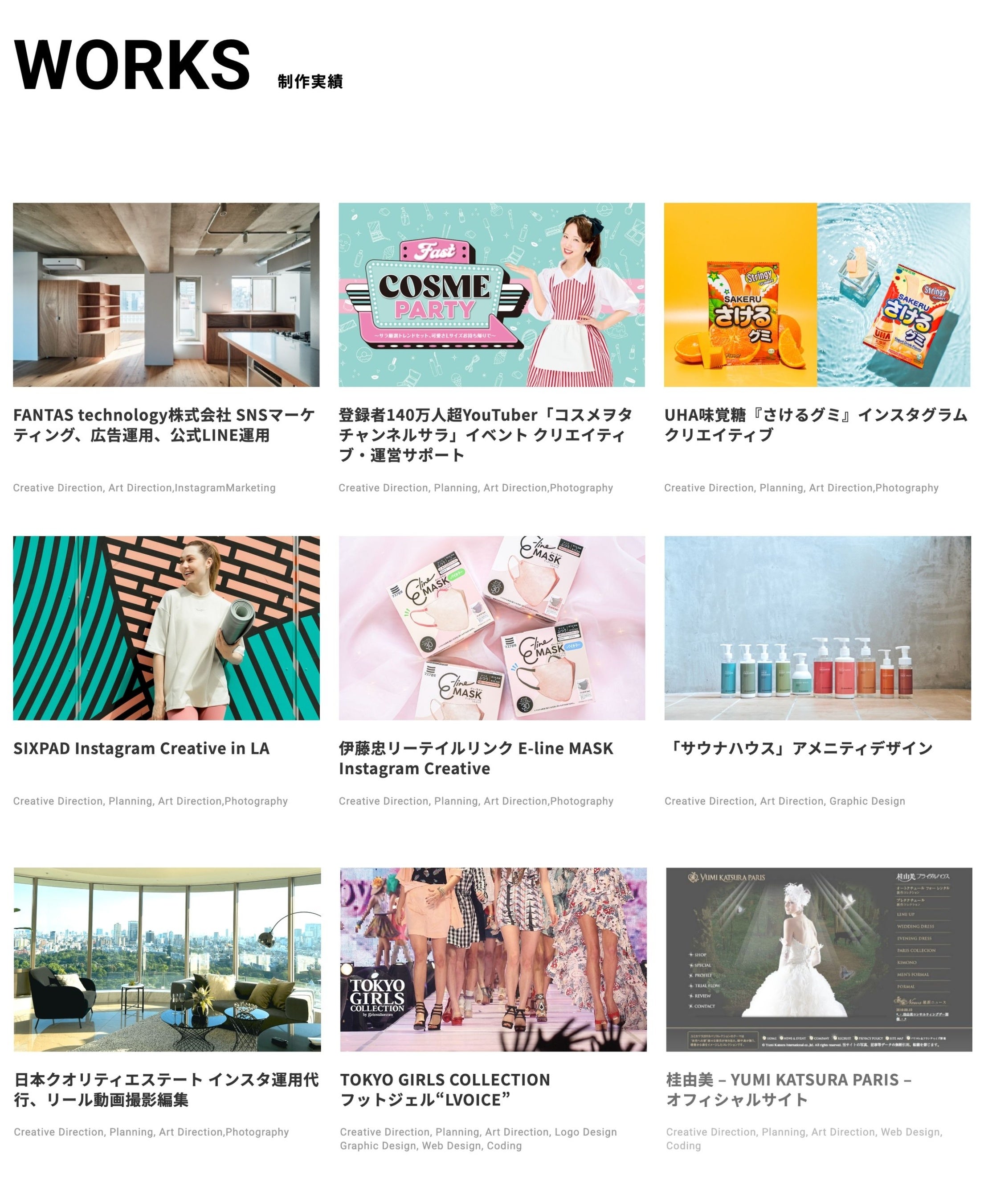 創業16年で、東証上場企業を含む約5000件以上を支援し、「SNS」「WEB」「広告」「デザイン」「動画」「インフルエンサー・モデルキャスティング」「イベント企画」などを通じて企業のブランド価値向上に貢献してきました。