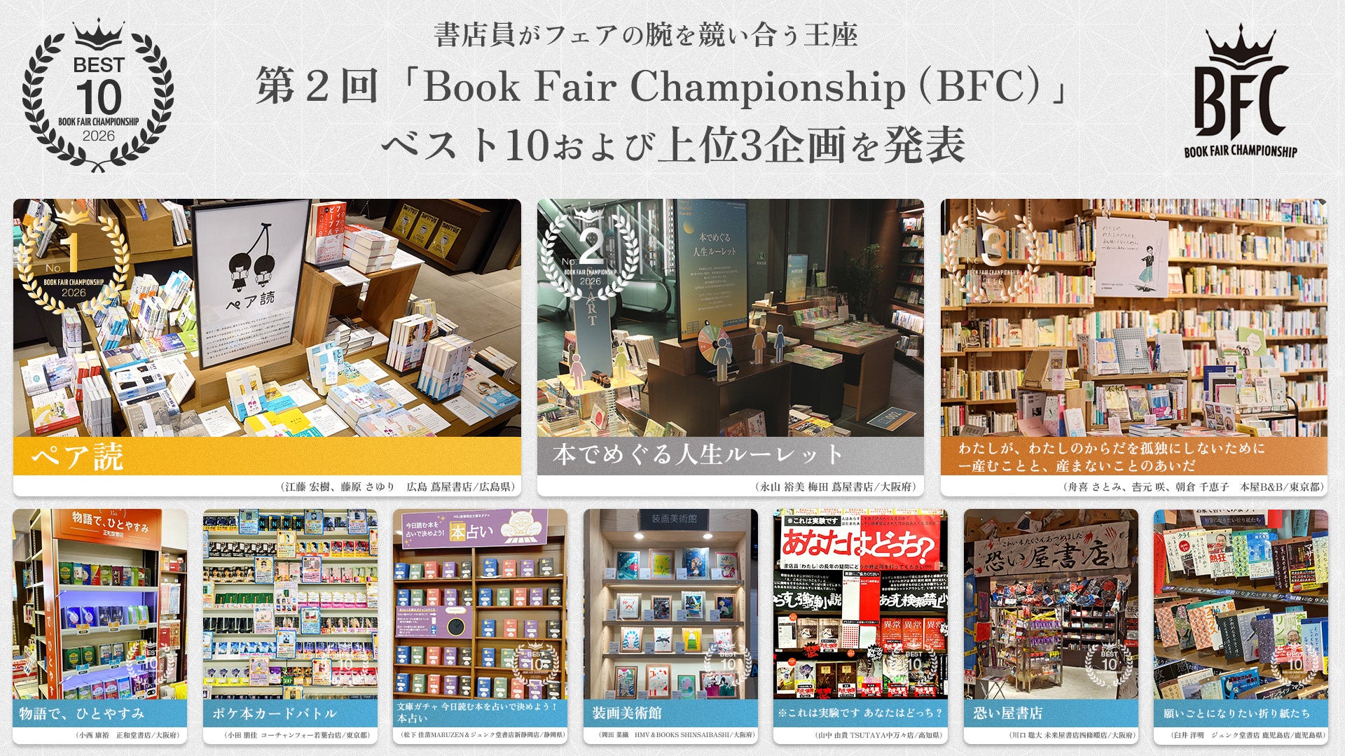 全国の書店員が日本で一番面白い書店フェア企画を競い合う、出版業界横断プロジェクト「OVOL 日本紙パルプ商事 presents Book Fair Championship」(実行委員長:梅田 蔦屋書店 店長 兼 文学コンシェルジュ 北田博充、以下「BFC」)は、2026年1月16日(金)に最終審査会を実施し、第2回BFCのベスト10フェア企画の中からトップ3(1位〜3位)を決定しました。
