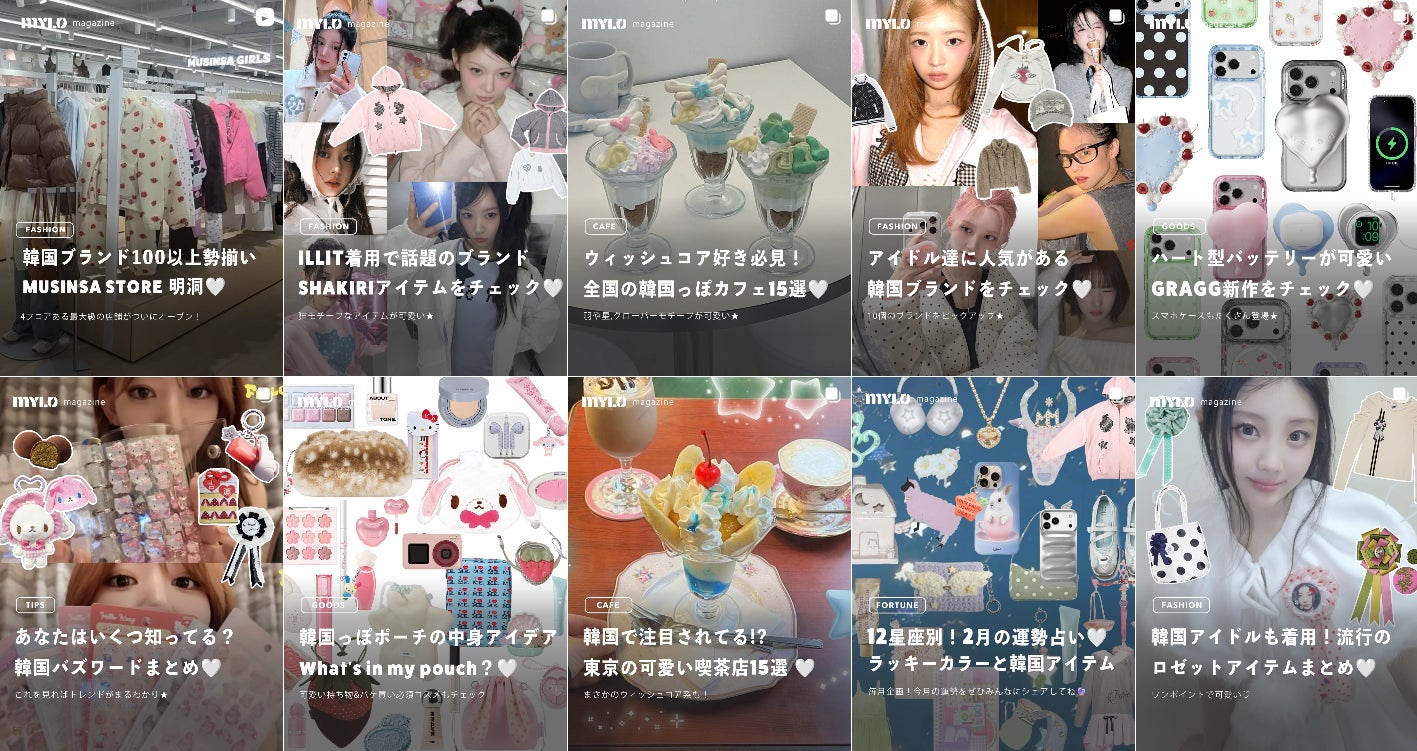 "韓国で今流行っているものが知れる"をテーマにgraftoが運営しているメディア「mylo magazine」は2025年の夏頃よりエンゲージメント/フォロワー共に急成長を遂げており、現在月間閲覧数3000万、月間フォロワー増加数も1万人を超え、各SNSの合計フォロワー数は1年間で7万人を突破いたしました。