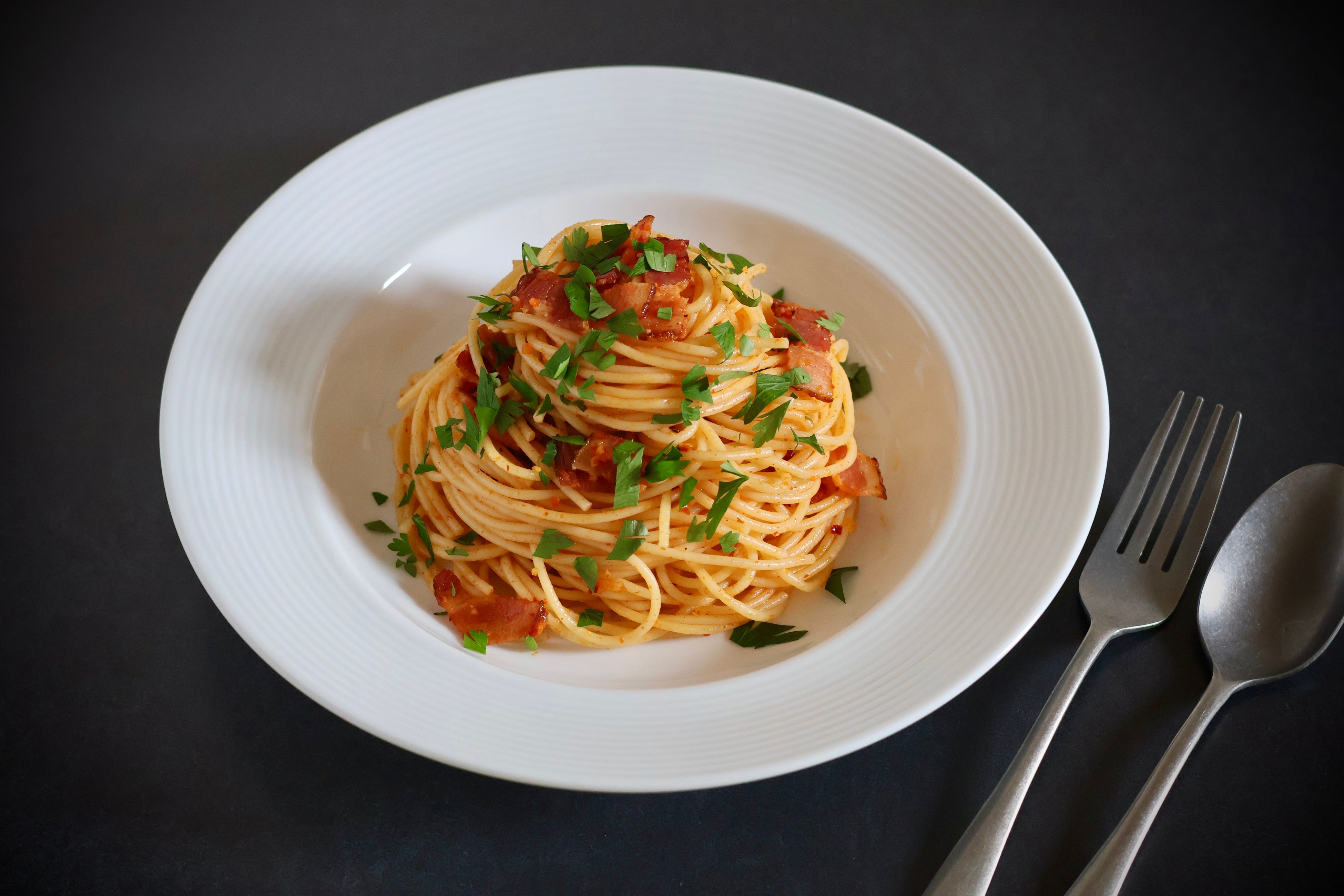 朱にんにくを加えるだけで、香り高くピリ辛な本格パスタに。