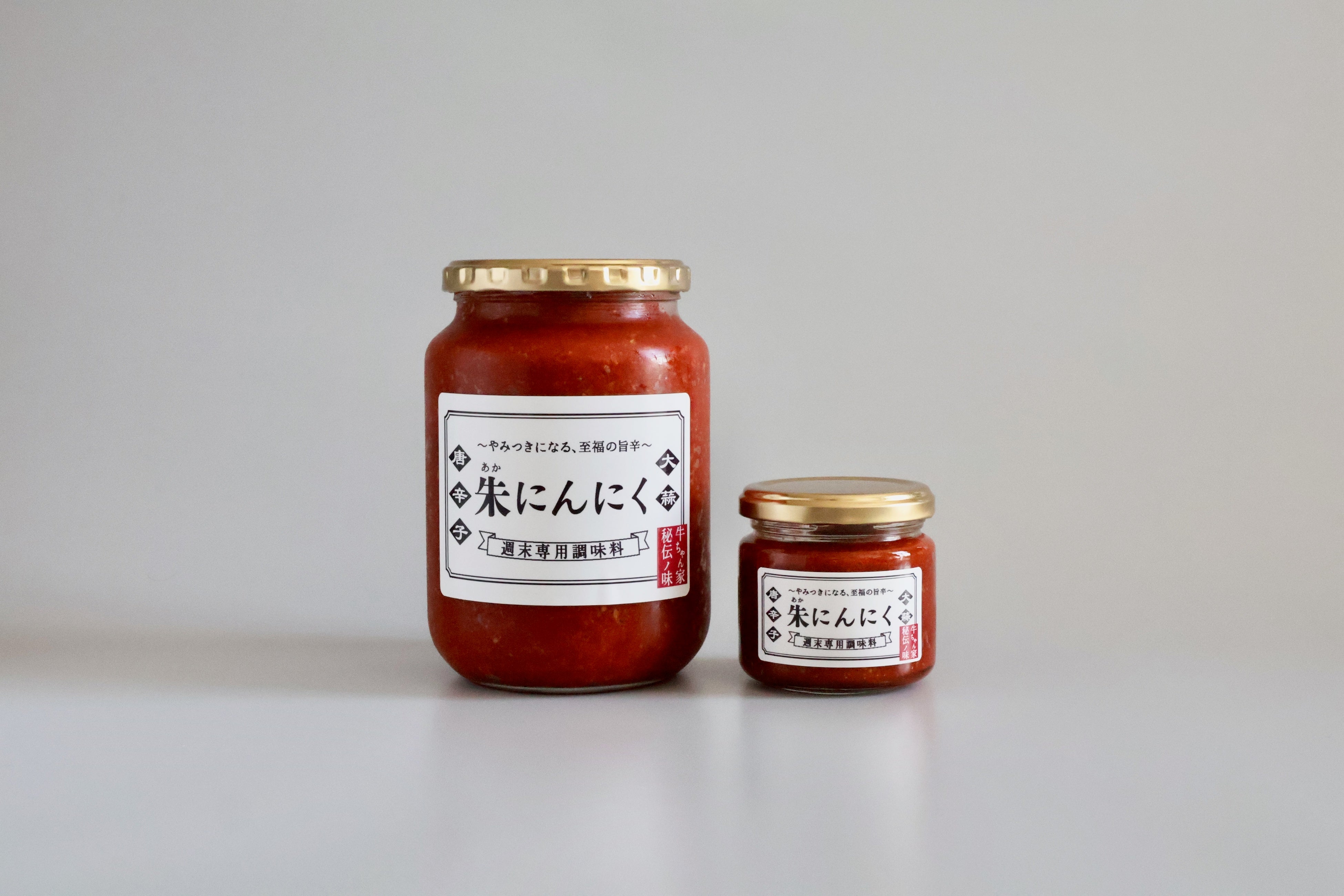 「朱にんにく」は、祖母が家庭で作り始め、母が守り続けてきた“家の味”を原点に誕生した、ひとさじで料理を格上げする週末専用調味料です。