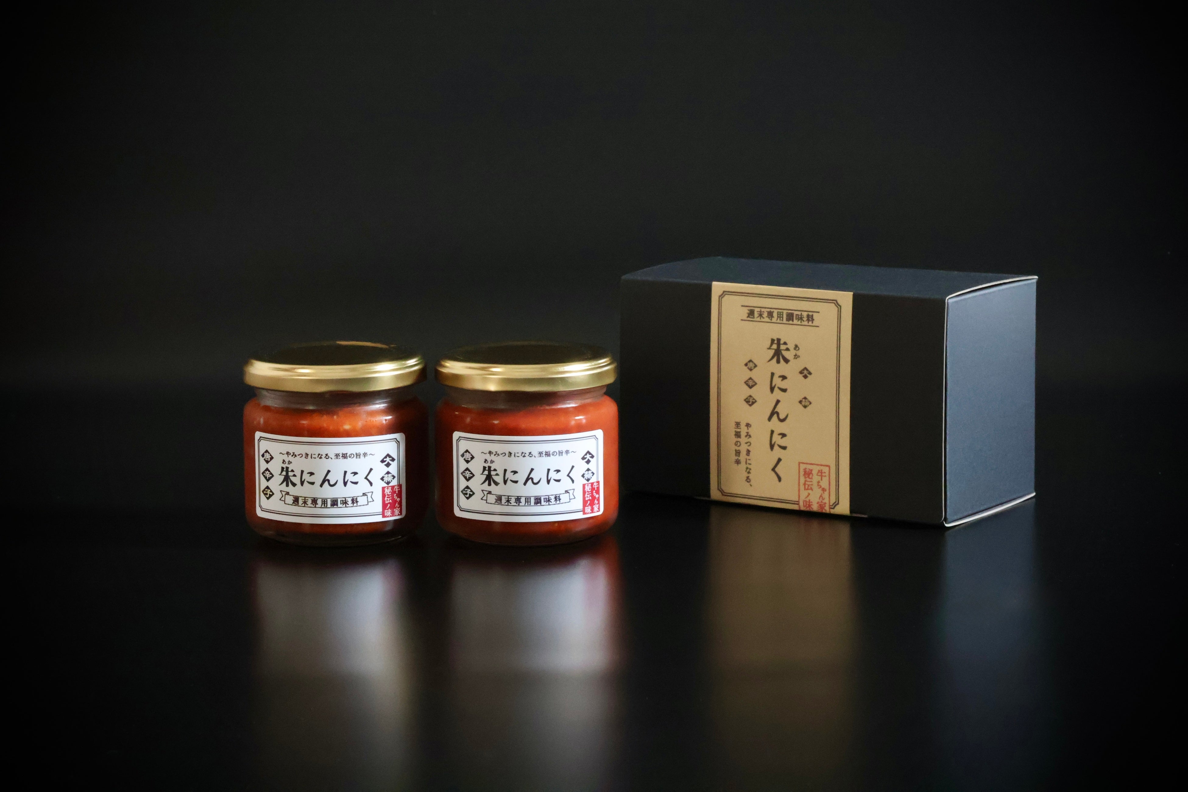 「朱にんにく」は、黒を基調とした上質なパッケージと化粧箱でご用意しています。背景にある物語とともに贈ることで、「何を贈るか」だけでなく、「なぜこれを選んだのか」まで伝えられる調味料です。ご自宅用としてはもちろん、食にこだわりのある方へのギフトや、特別な日の手土産としてもご好評いただいています。