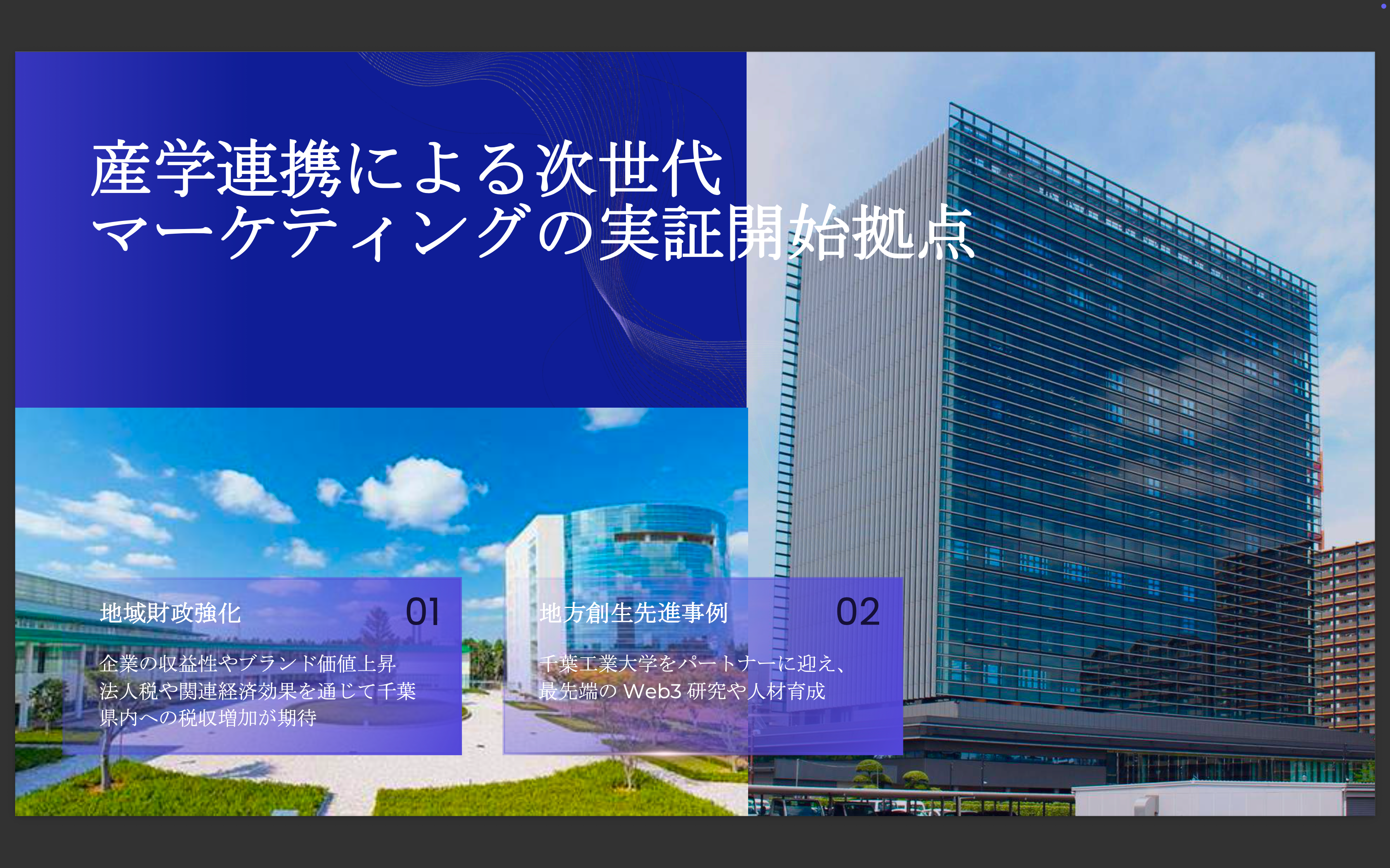 本事業は、千葉工業大学との産学連携を基盤に、Web3研究・人材育成と社会実装を同時に推進しています。