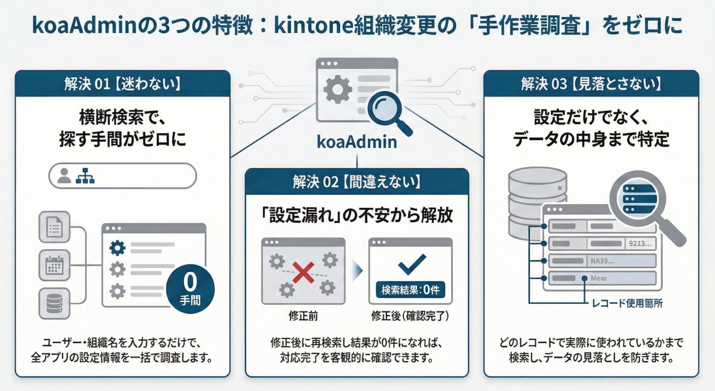 コアノーツ、kintoneシステム管理者の「力任せ影響調査」を改善するプラグイン「koaAdmin」提供開始