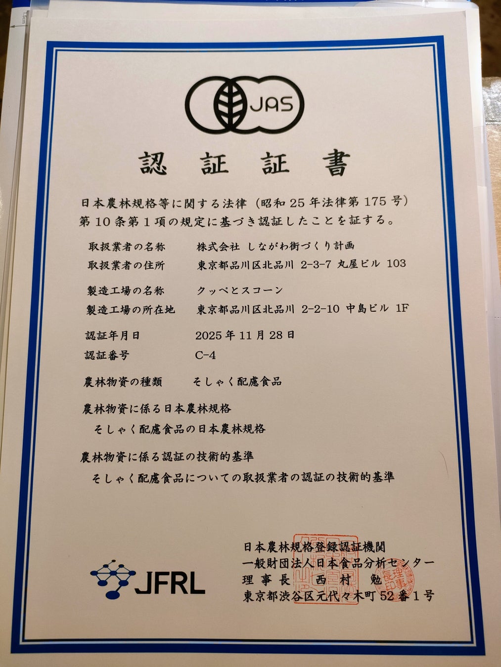 品川でブックカフェKAIDObooks&coffeeを展開する株式会社しながわ街づくり計画(所在地:東京都品川区、代表取締役:佐藤亮太)は、この度新たに開発した新商品「おばあちゃんぱん」において、2025年11月28日付けで、《パン業界で国内初》のJAS規格(日本農林規格)を取得しました。