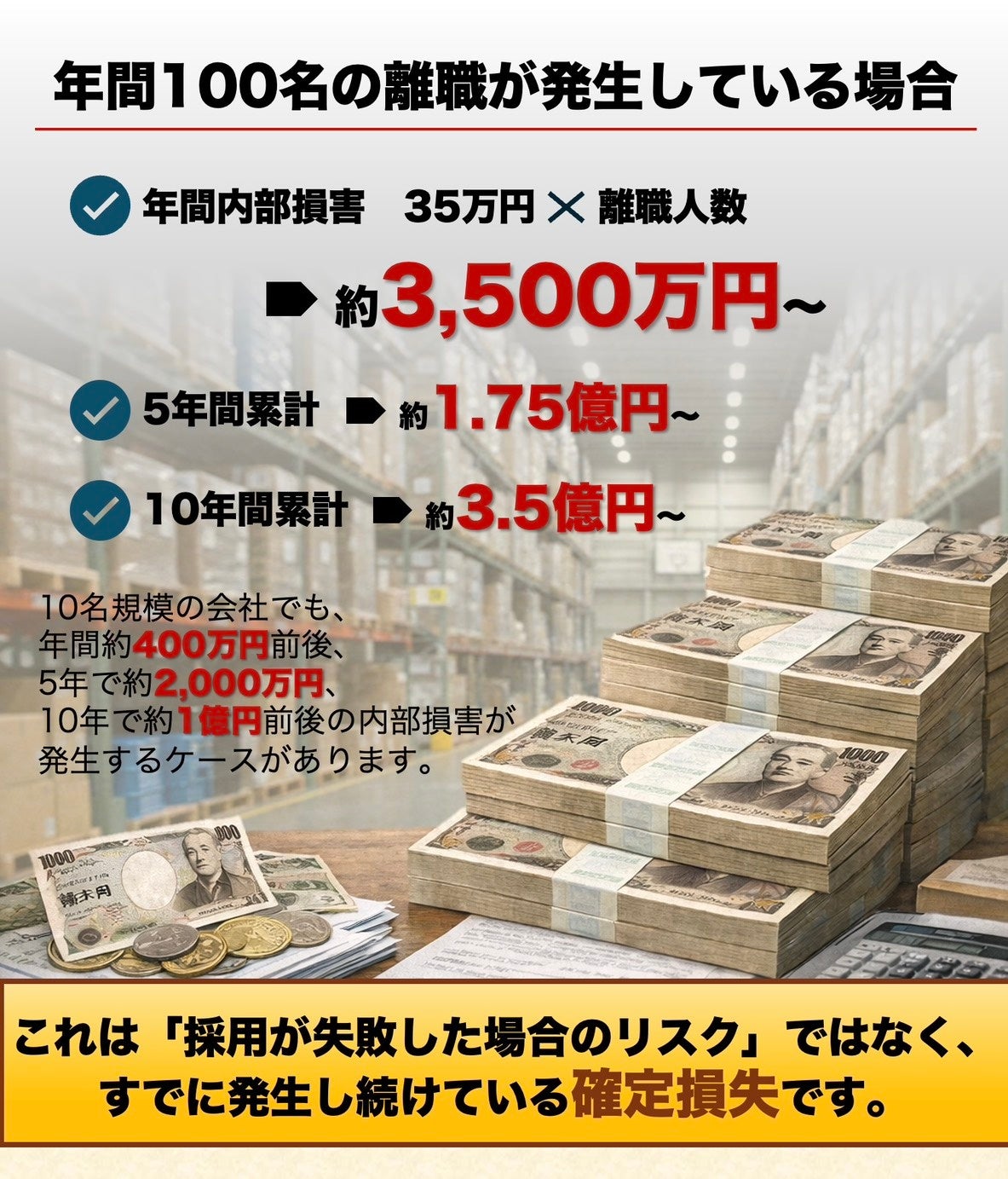 ・見えない年間内部損害 35万円 × 離職人数