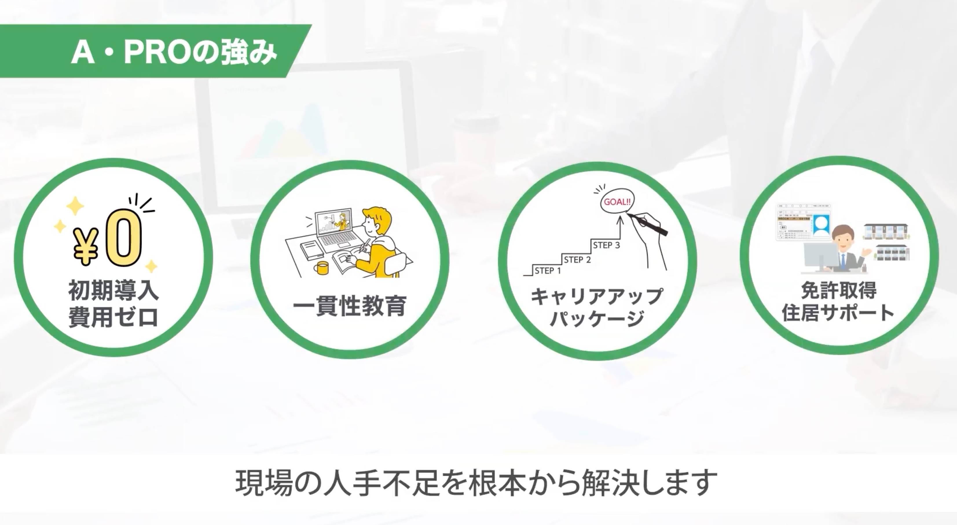 ア・プロのサブスク方式の【フラットパッケージ】は、人手不足対策としての外国人労働者受け入れを“一過性で終わらせない”設計です。