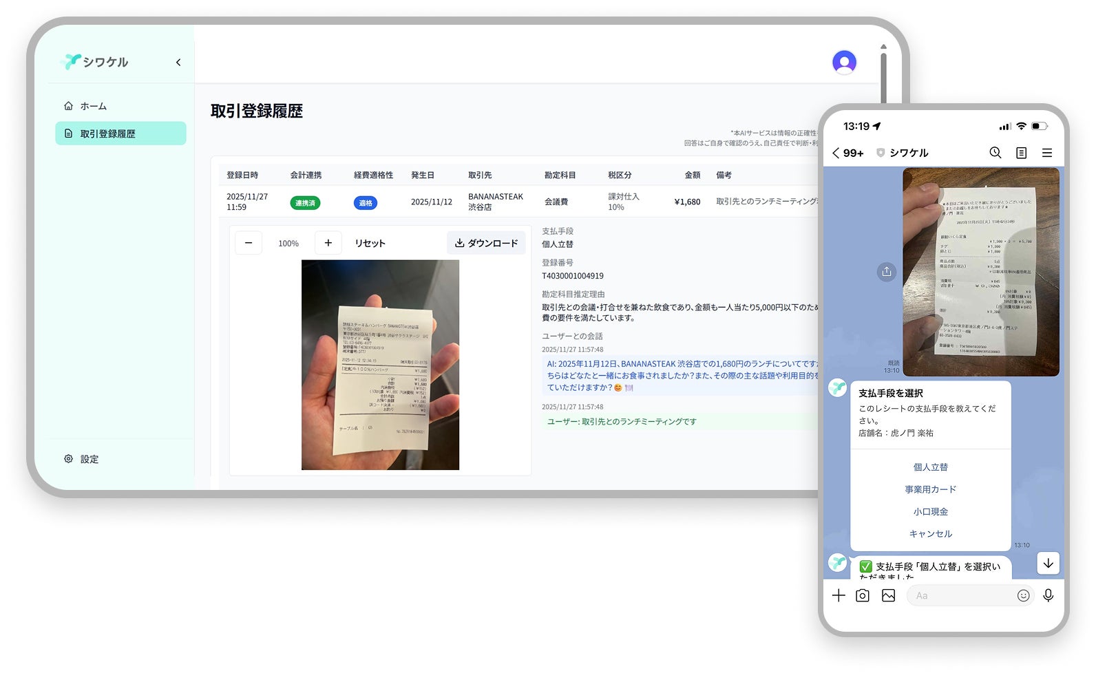 レシートを撮って送るだけでAIが即解析。支出の文脈推定から会計登録まで自動でこなす“対話型レシート仕訳サービス”を提供開始