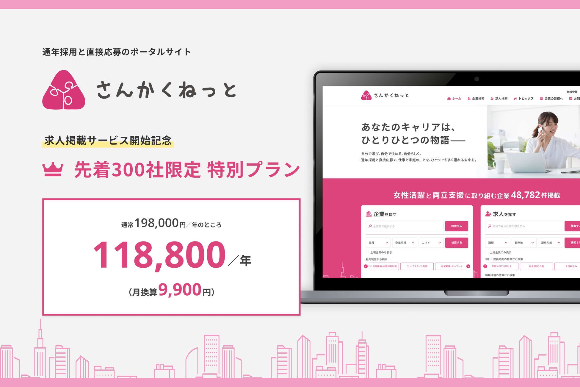 【採用活動をサステナブルに】通年採用と直接応募のポータルサイト「さんかくねっと」が求人掲載サービス開始記念に、先着300社限定に特別プランをご提供!