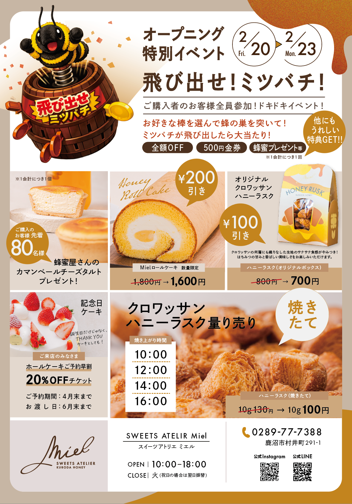 黒田養蜂園のパティスリーが「スイーツアトリエ ミエル」として2026年2月20日リニューアルオープン
