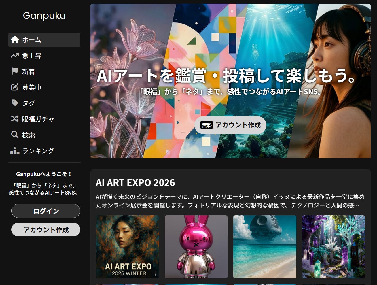 AIアートに特化したソーシャル・ネットワーキング・サービス「Ganpuku(ガンプク)」は、2026年1月20日よりオープンβテストを開始しました。